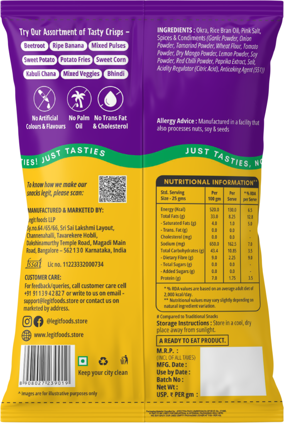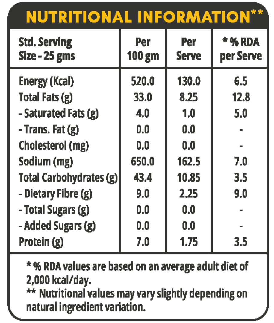 Bhindi might be a childhood favourite on the lunch table, and now it’s here in a brand-new form. Crisped to perfection, they’re light, fun, and a snack you’ll keep reaching for. Rich in fibre, Vitamin C, and antioxidants, they’re as good for you as they are delicious.