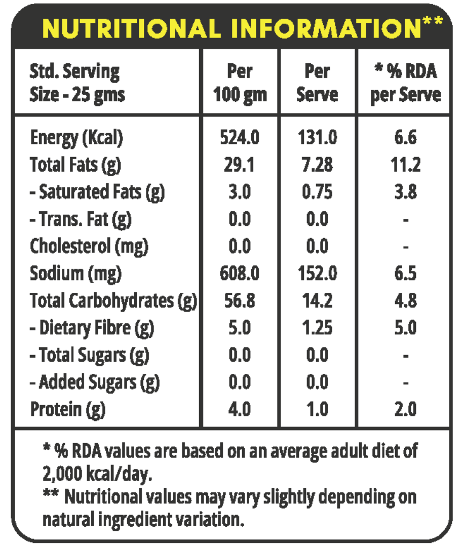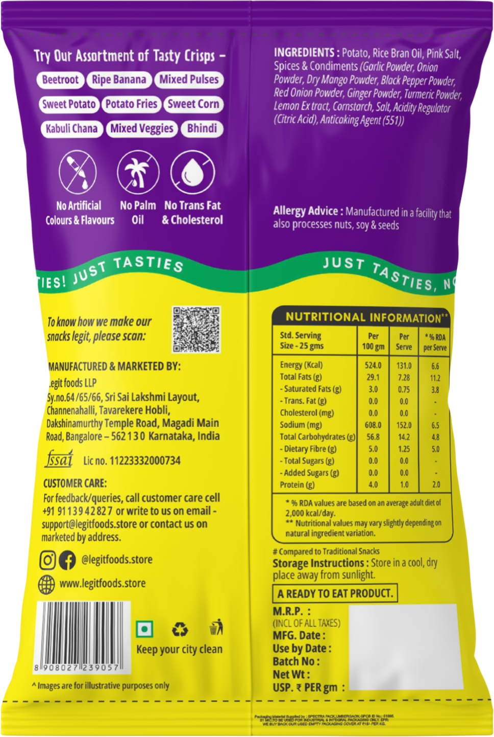 From the restaurant avatar to the homestyle ones made with mother's love, potato fries have been a go-to comfort food for the longest time. We’ve reimagined them into light, crunchy crisps that bring the same joy without the heaviness. Rich in fibre and potassium, they’re a tasty way to keep your energy going strong.